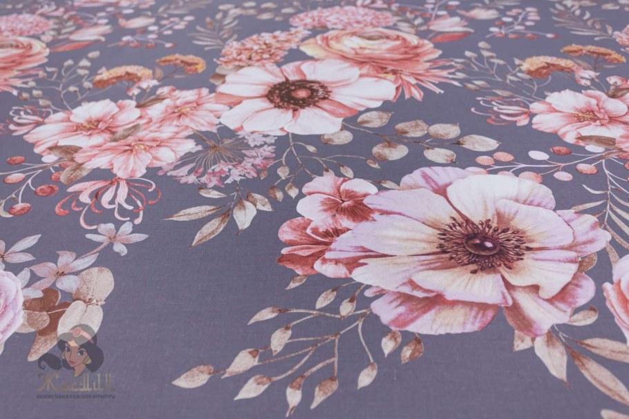 Перкаль 150 см набивной арт 140 "Тейково" рис 13193 вид 1 "маки"