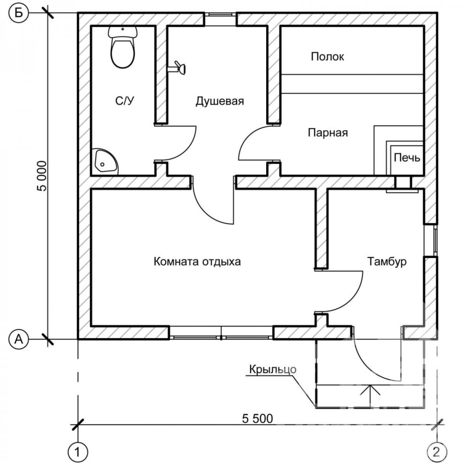 Баня 4х4 планировка с парилкой и мойкой и раздевалкой