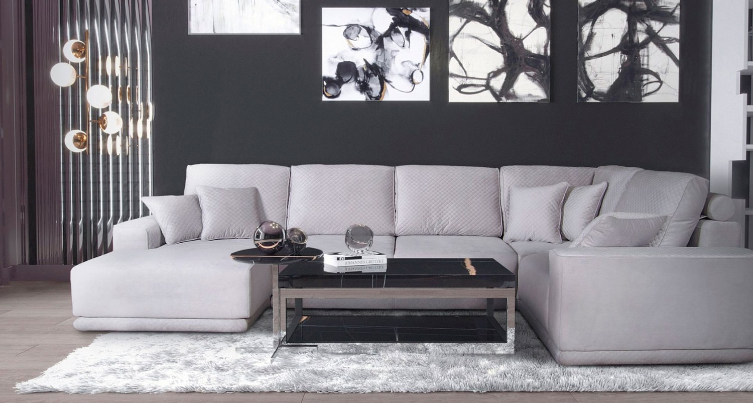 Угловой диван Аджио (п-образный с 2 оттоманками)(Valeri 013/Taft Mint)
