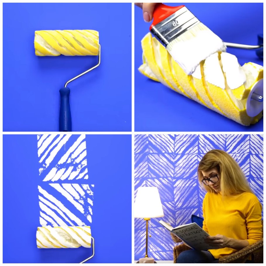 Окрашивание стен водоэмульсионной краской валиком узорным