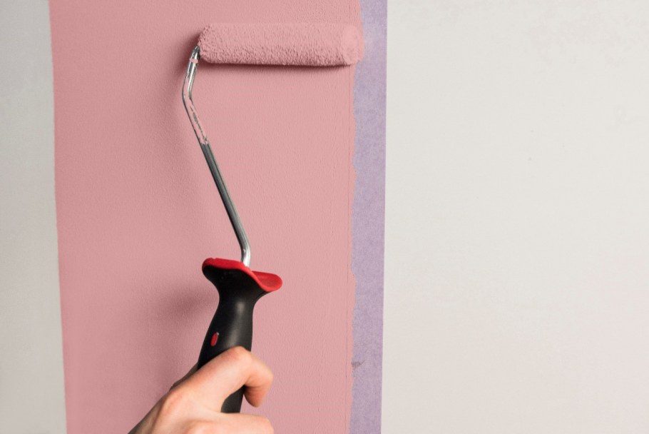 Валик красит стену