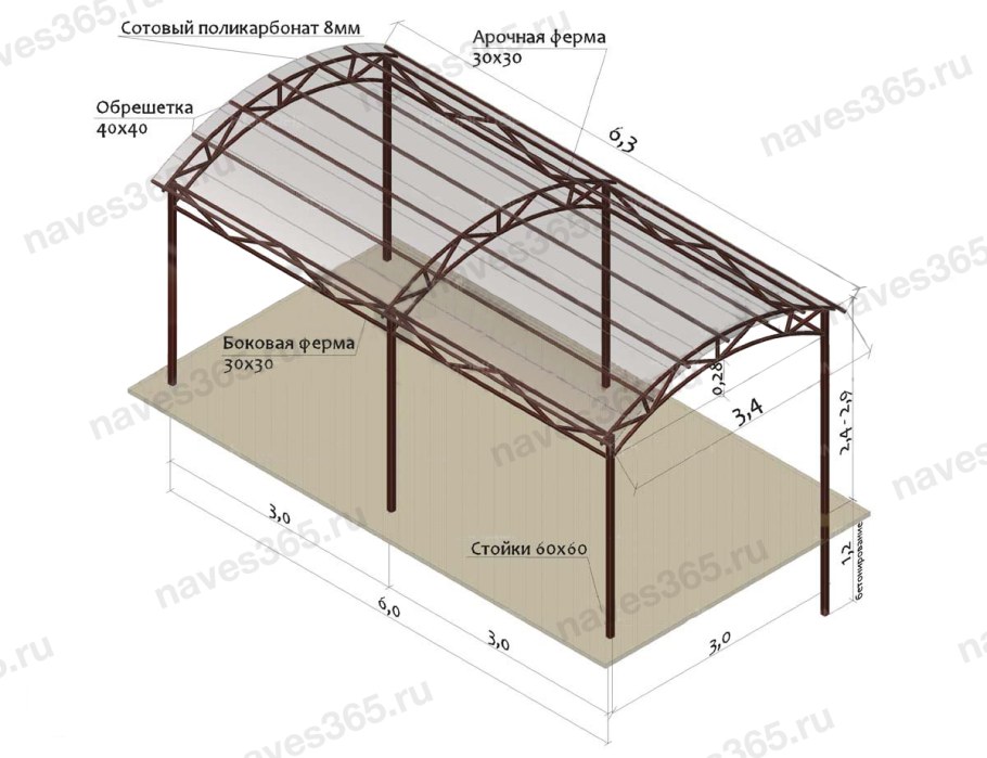 Навес из поликарбоната 3х6м чертежи