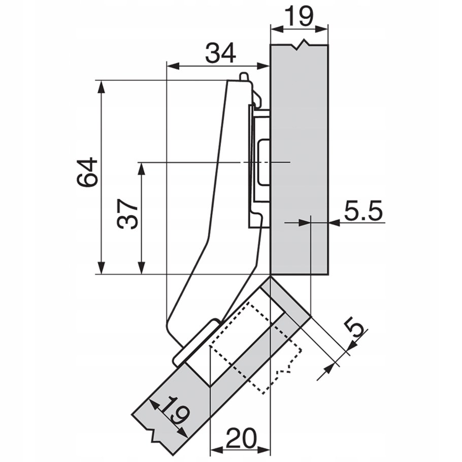 Петля мебельная 45 градусов для углового шкафа