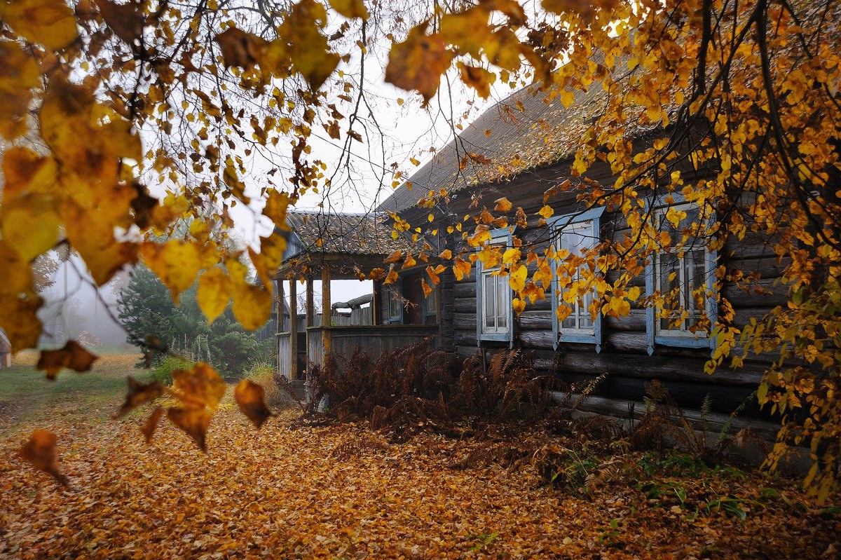 Деревянный дом осень