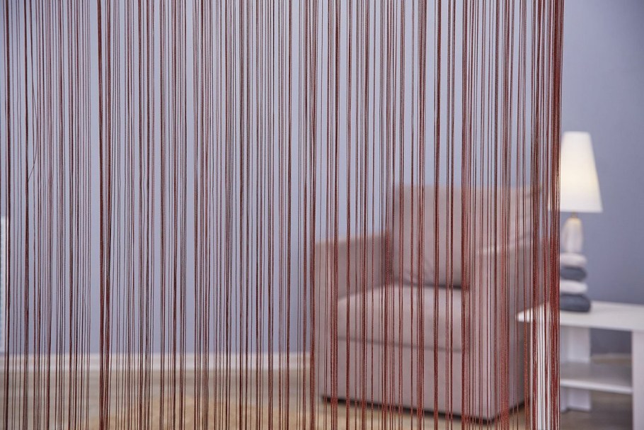 Верёвочные шторы в интерьере гостиной для зонирования комнаты