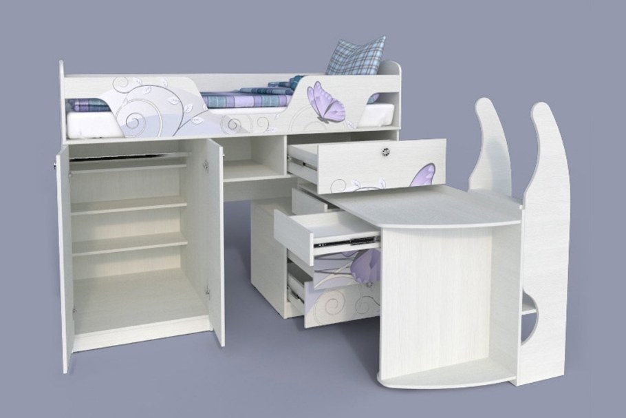 Кровать-чердак Сканд Марвин-4 + стол и комод (Винтерберг
