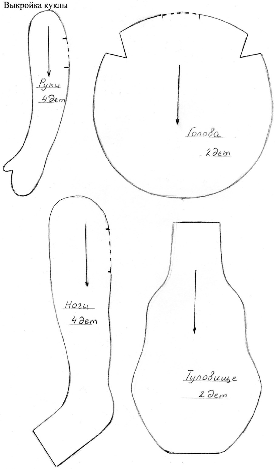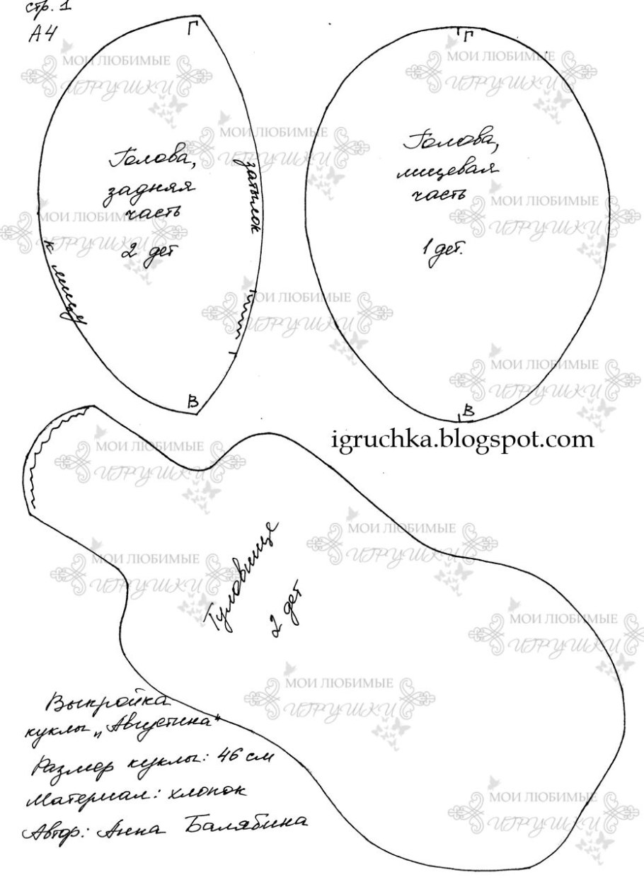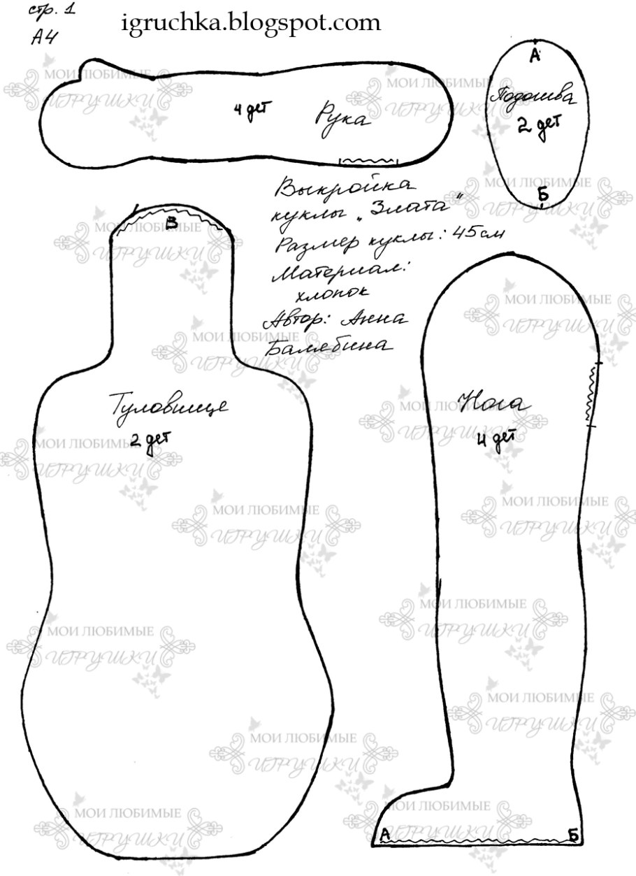 Выкройка текстильной шарнирной куклы Елены Негороженко выкройки