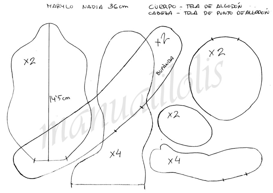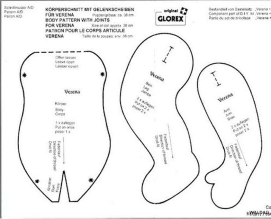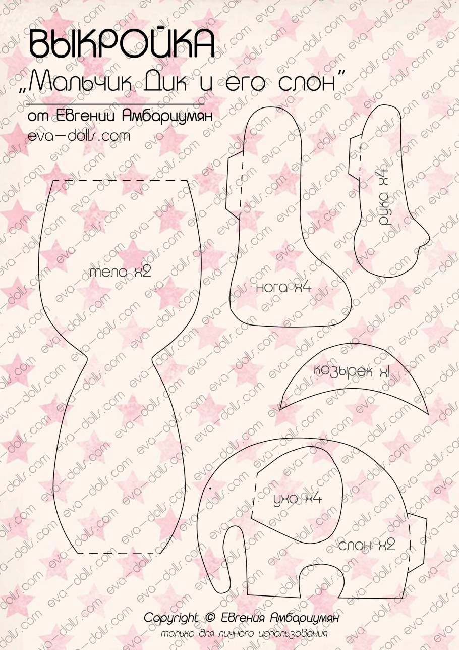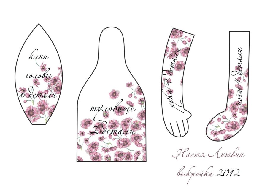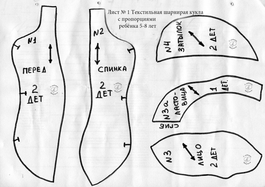 Выкройка текстильной шарнирной куклы Елены Негороженко выкройки