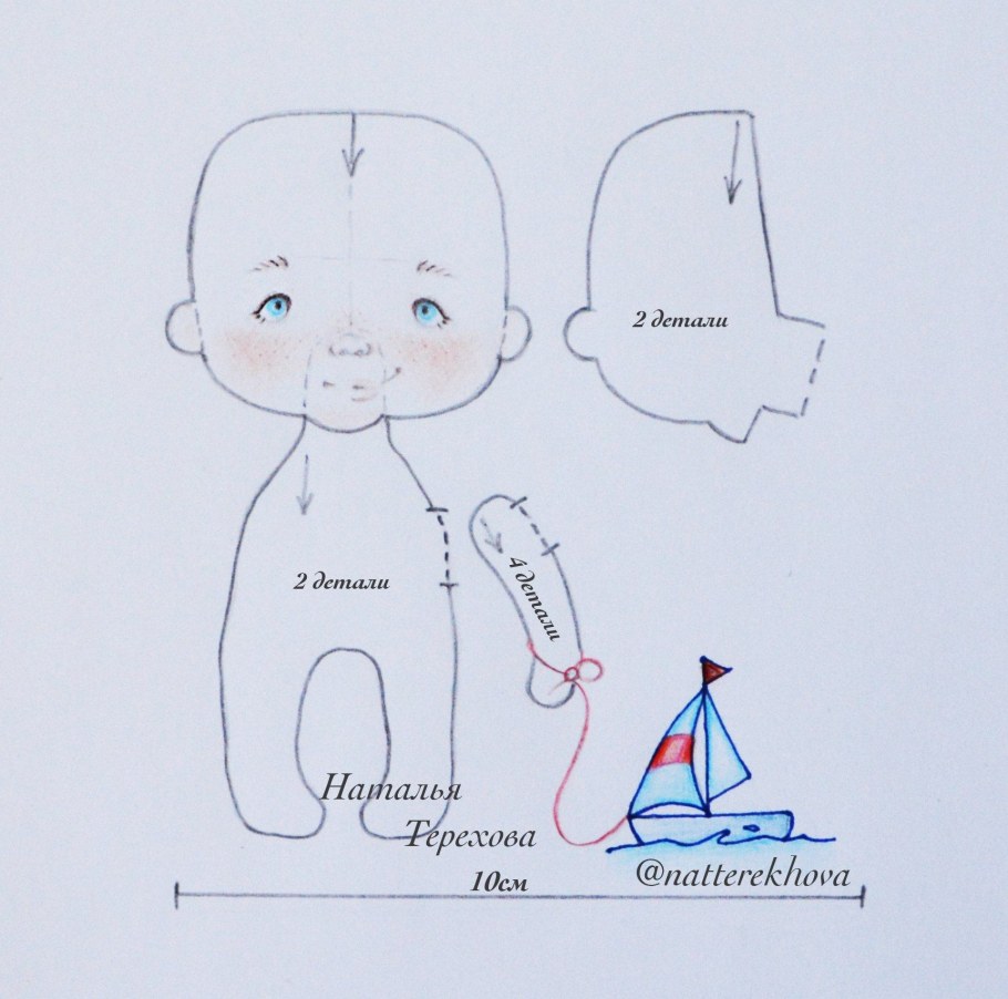 Выкройка вальдорфской куклы младенца в натуральную величину