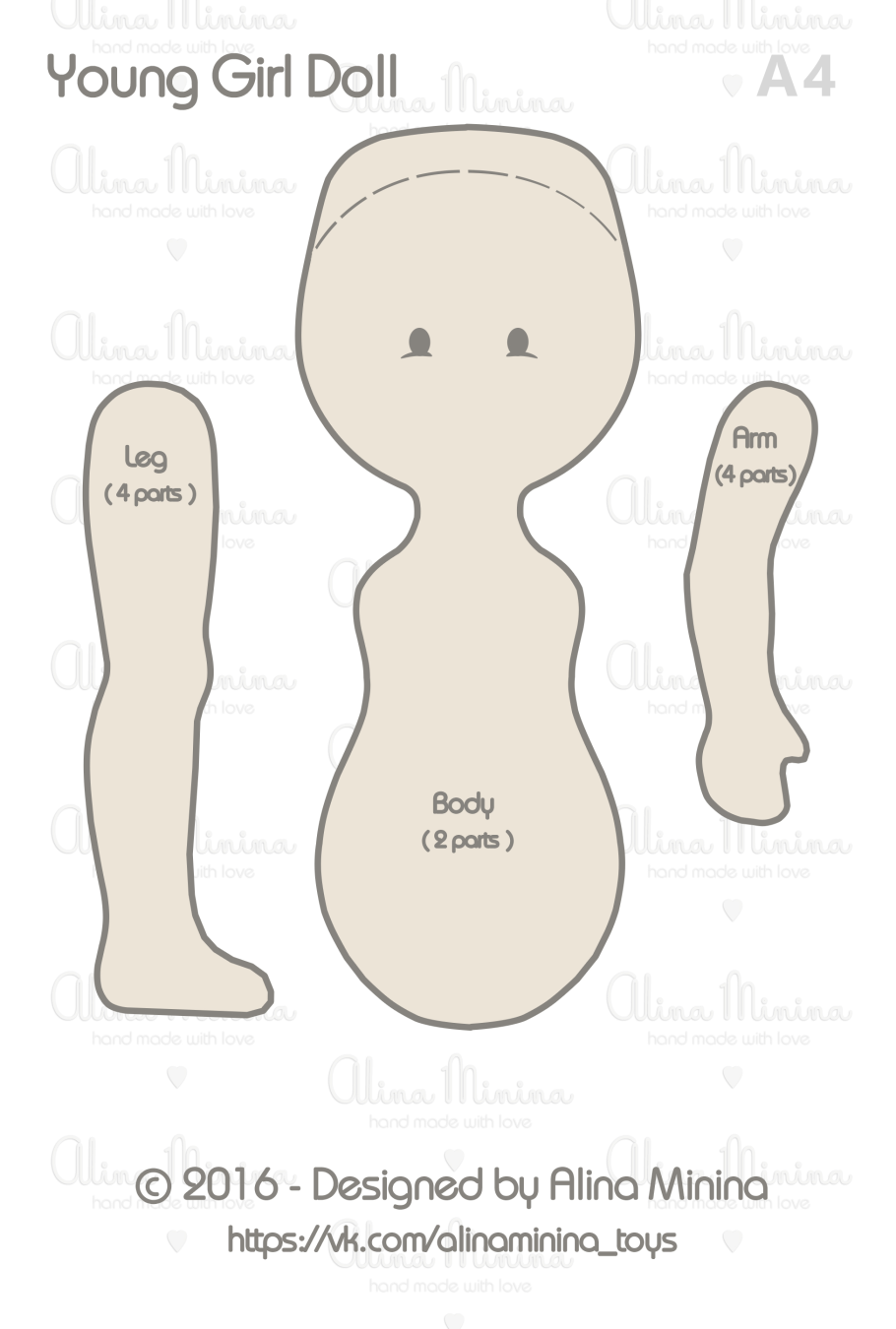 Выкройка куклы снежки в натуральную величину в сантиметрах