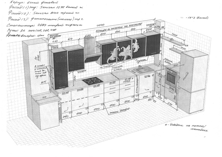 Кухня п образная чертежи