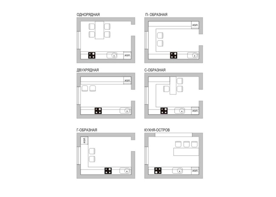 Виды кухонь линейная угловая п-образная параллельная