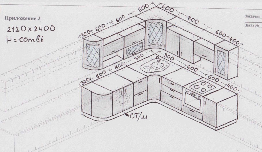 Кухонный мебель угловой 210х200 чертеж с размерами