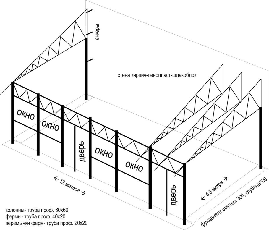 Навес односкатный металлический чертеж с размерами 9000/12000