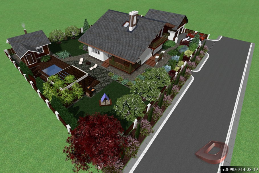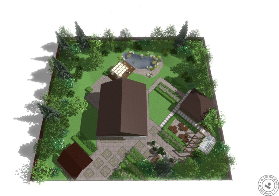 Ландшафт участка 20 соток с домом и баней и хозпостройками
