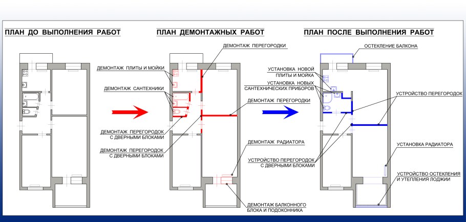 Перепланировка 4х комнатной брежневки в 3х комнатную