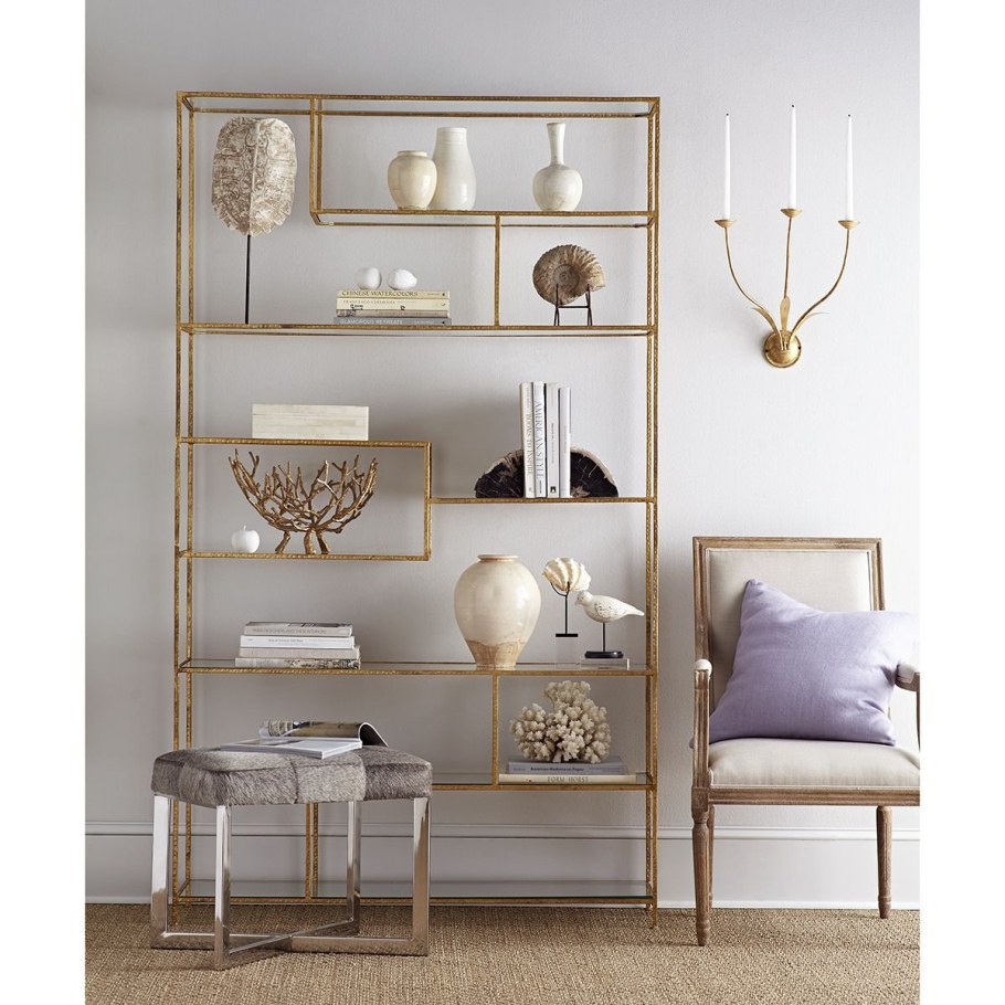 Золотой стеллаж в интерьере