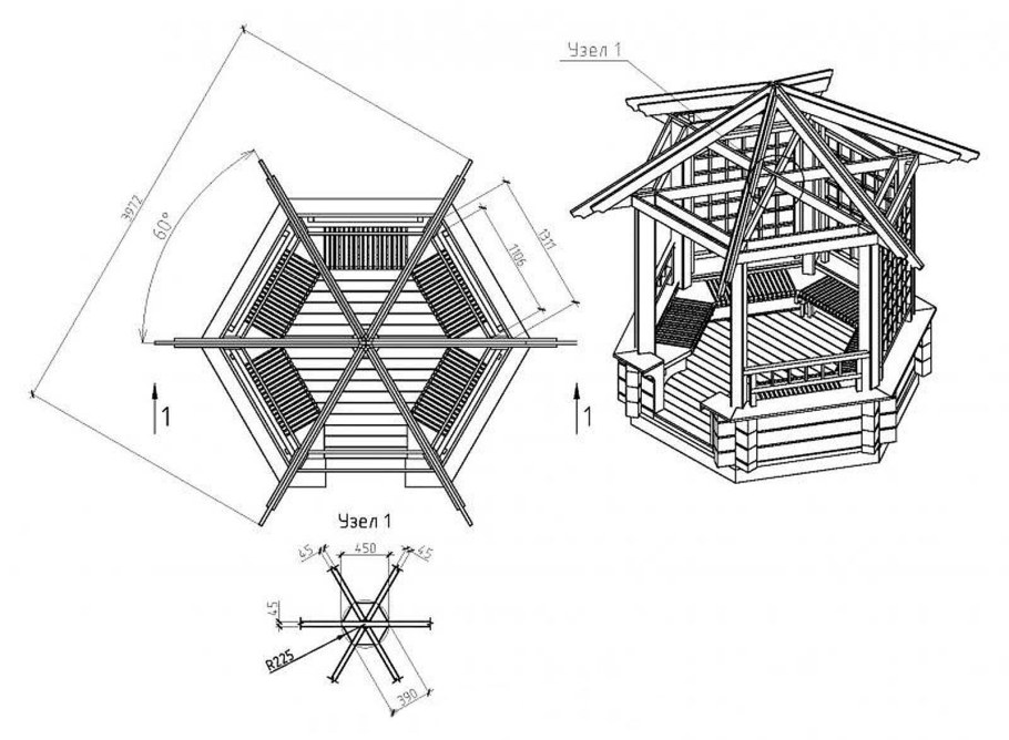 Беседка 6 угольная чертеж из дерева