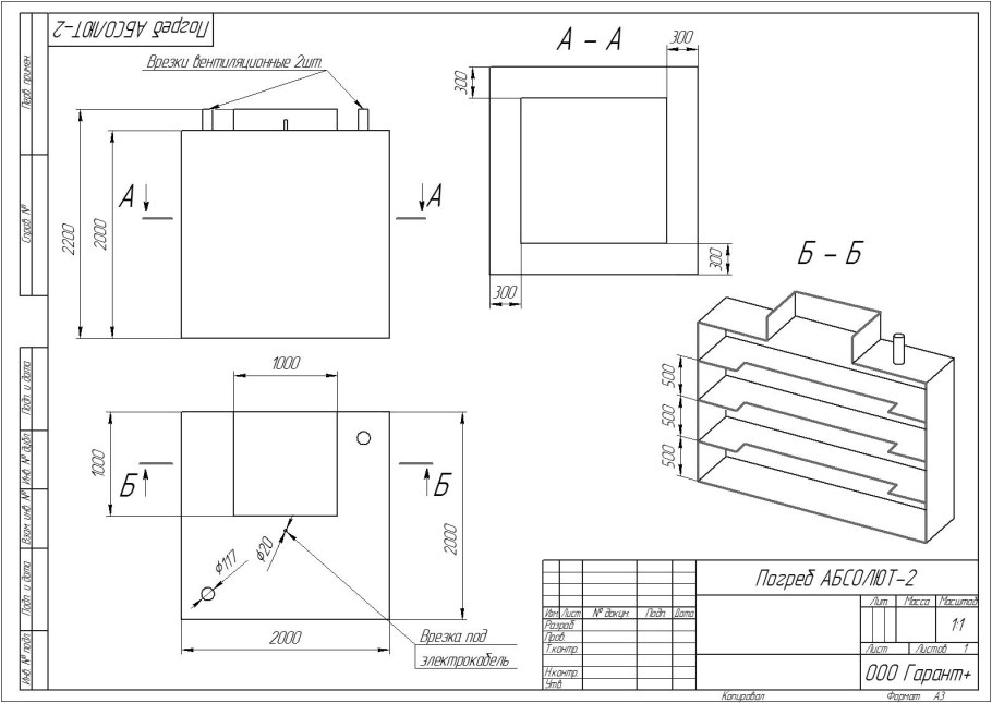 Чертеж кессона из металла для погреба