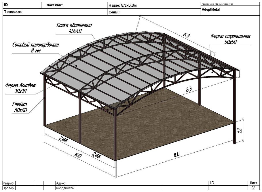 Навес из профильной трубы 40х20 чертеж