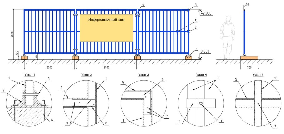 Конструкция ограждения строительной площадки чертеж