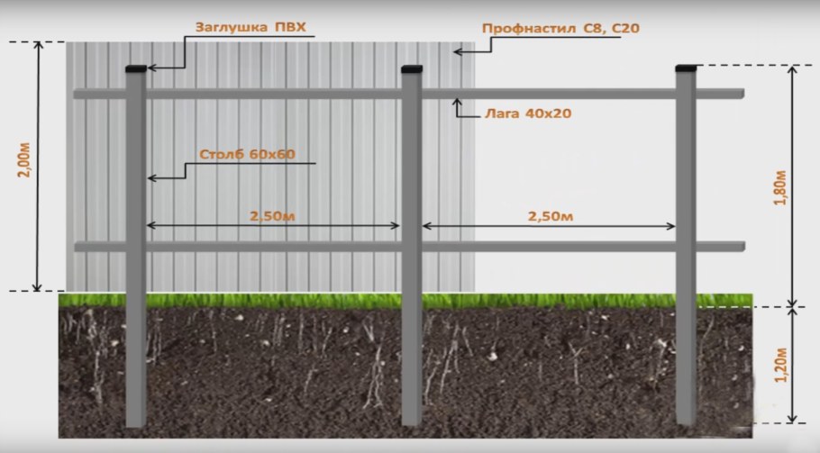 Забор профлист 2 метра схема