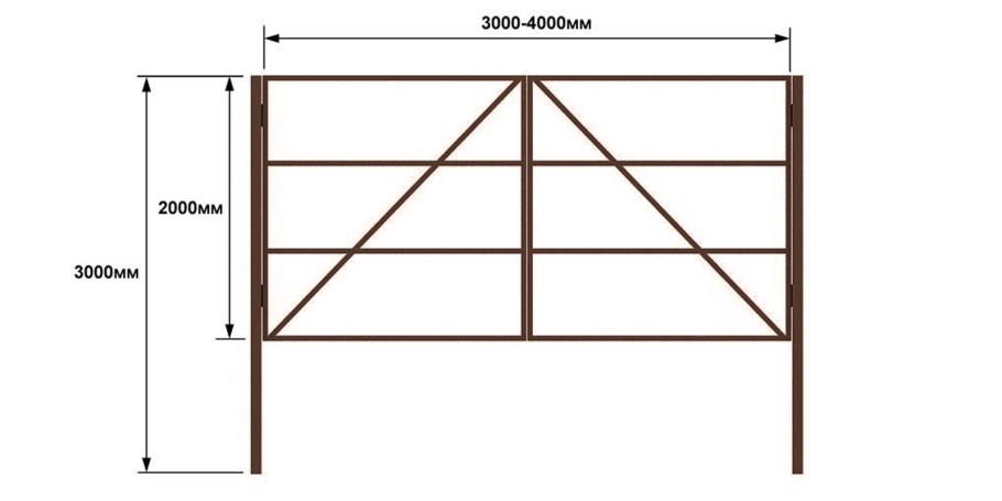 Ворота распашные 4 метра из профильной трубы и профлиста чертеж
