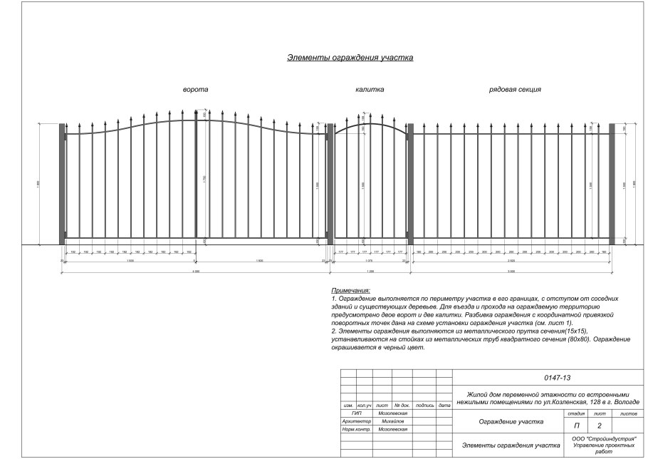 Ворота металлические распашные 4000х4300 с калиткой чертеж