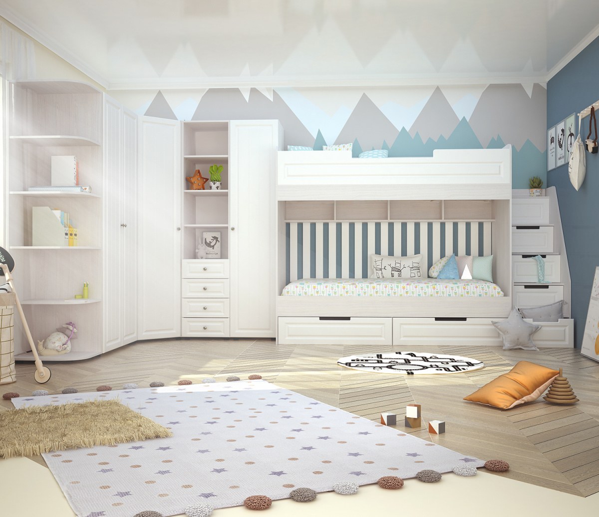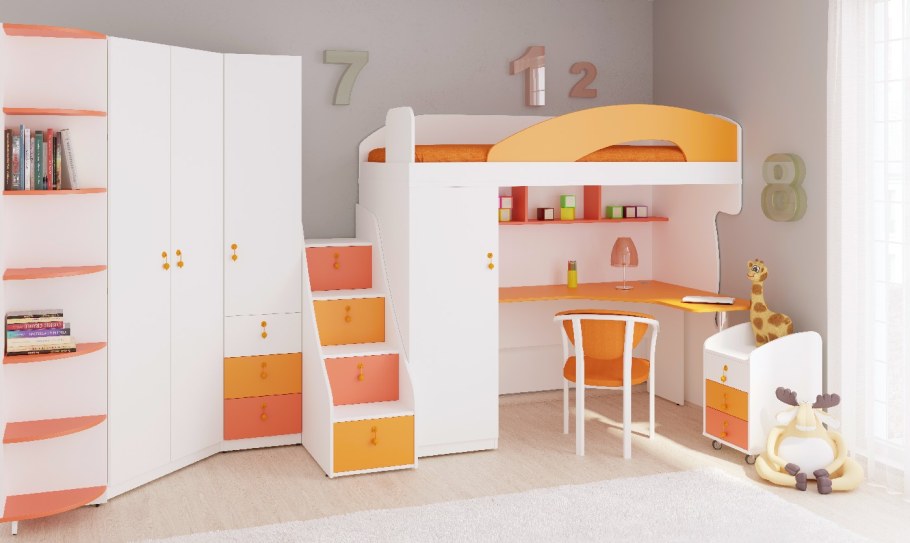 Двухъярусная кровать СЛАВМЕБЕЛЬ дуэт-15. Лестница-комод.
