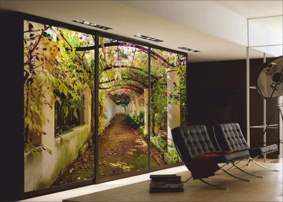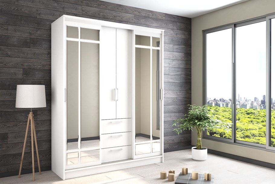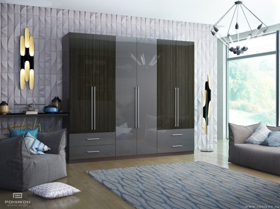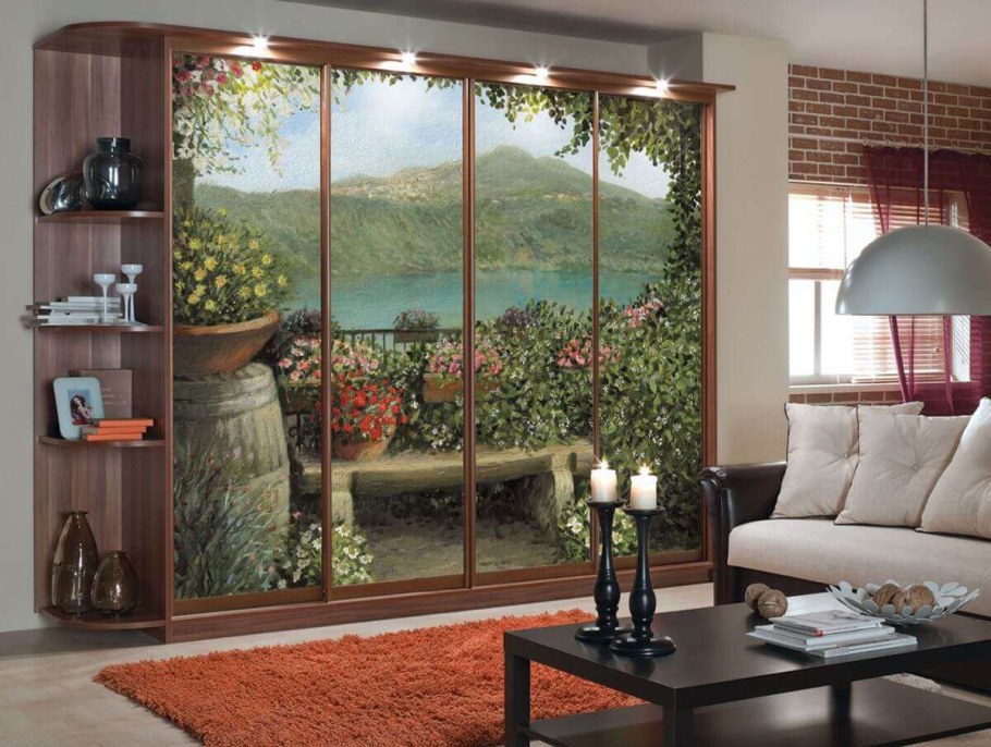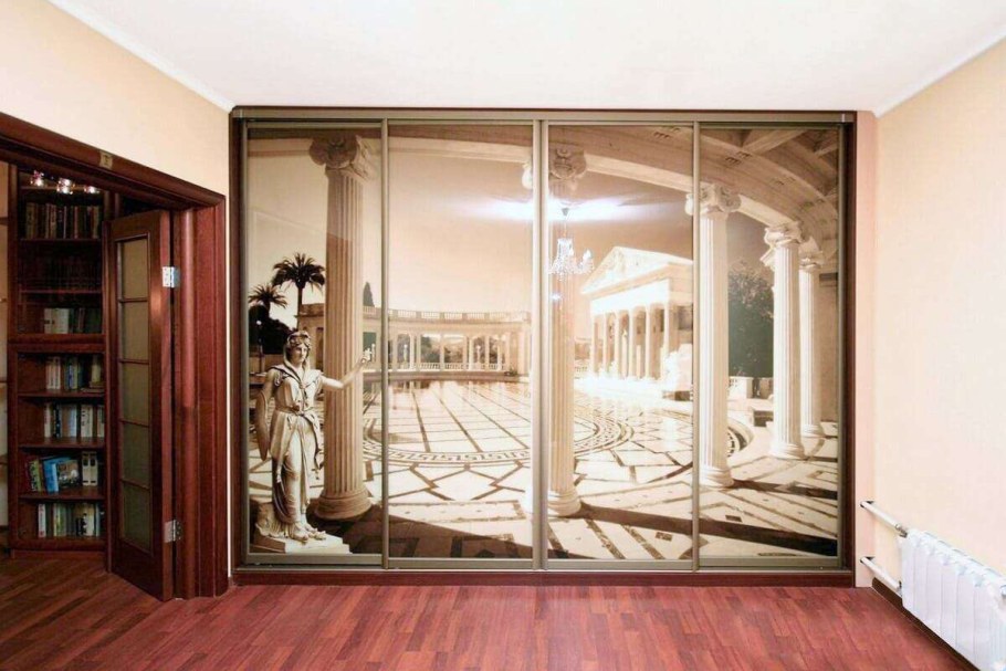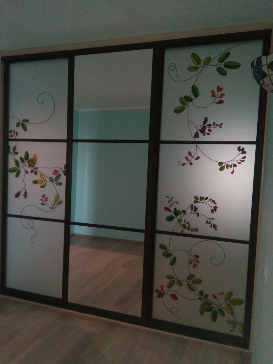 Зеркальные и матовые двери с рисунком большие для гардеробной