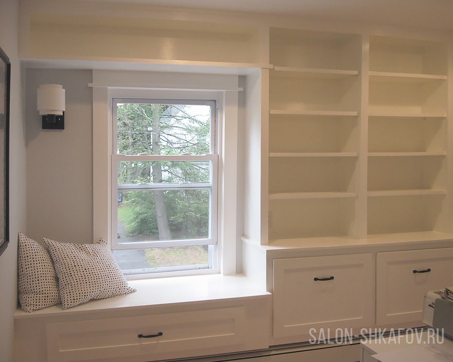 Шкафы и полки у окна