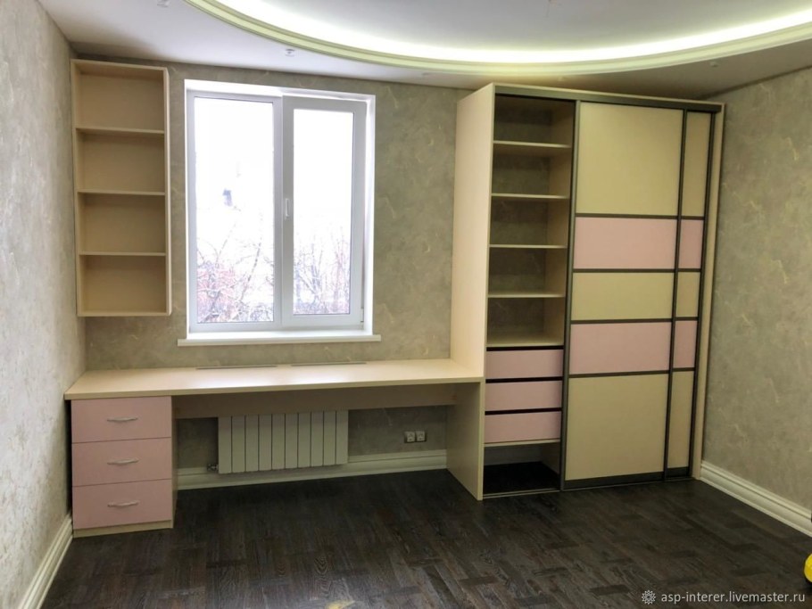 Шкаф у окна в детской со столом