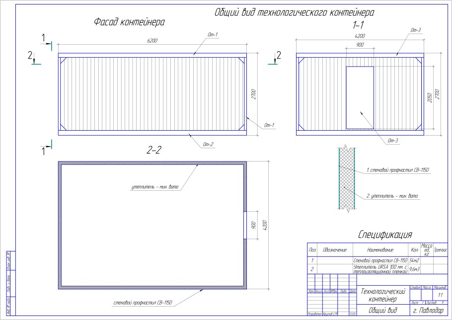 Комплект конструкторской документации блок-бокса с размерами 6х2,5м