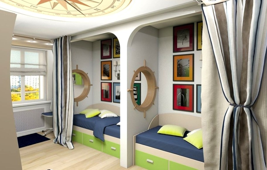 Комната для двоих разнополых подростков 20 кв.м с перегородкой