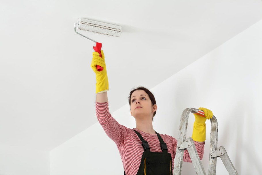Женщина красит потолок