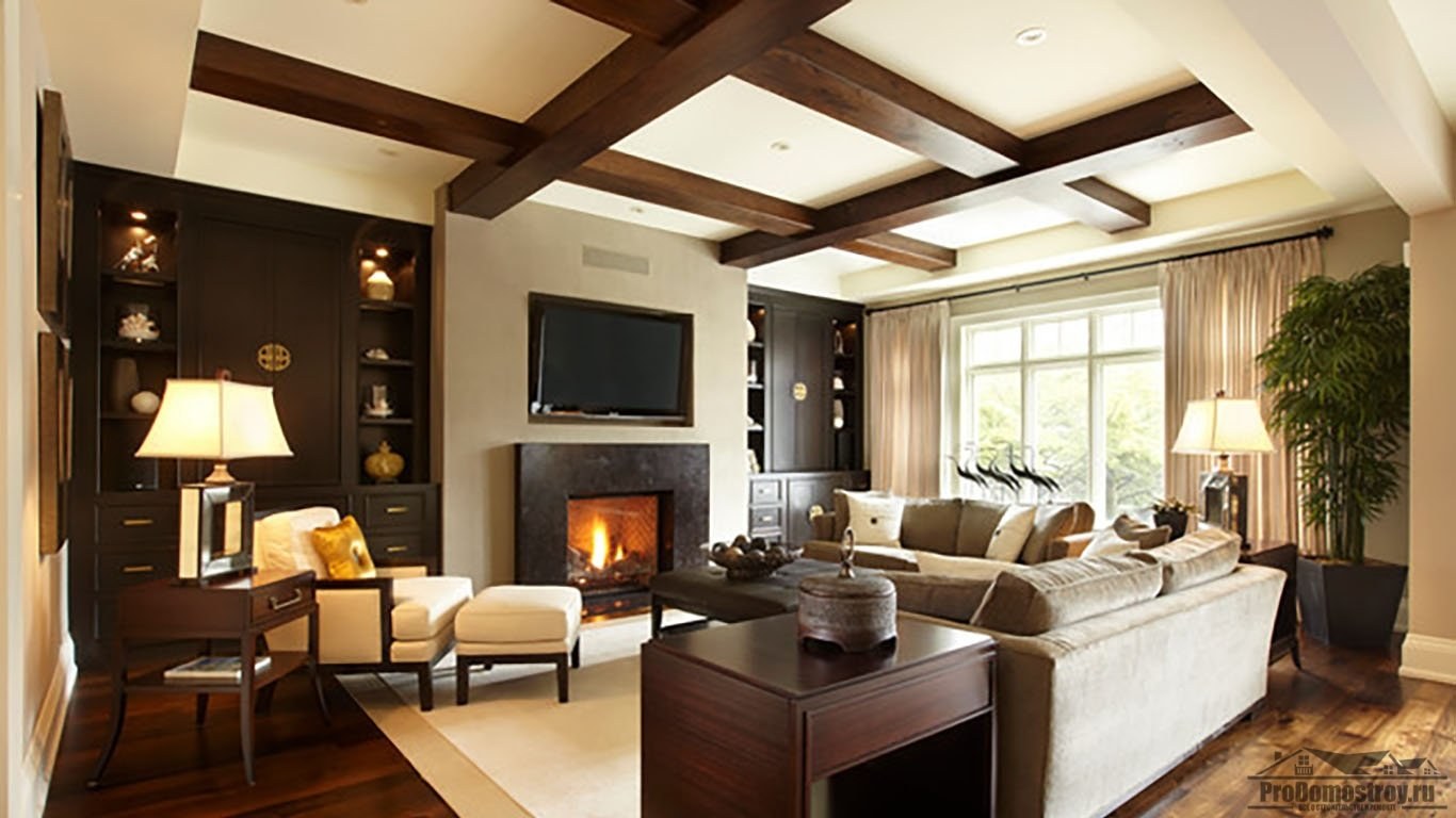 Балки в интерьере гостиной
