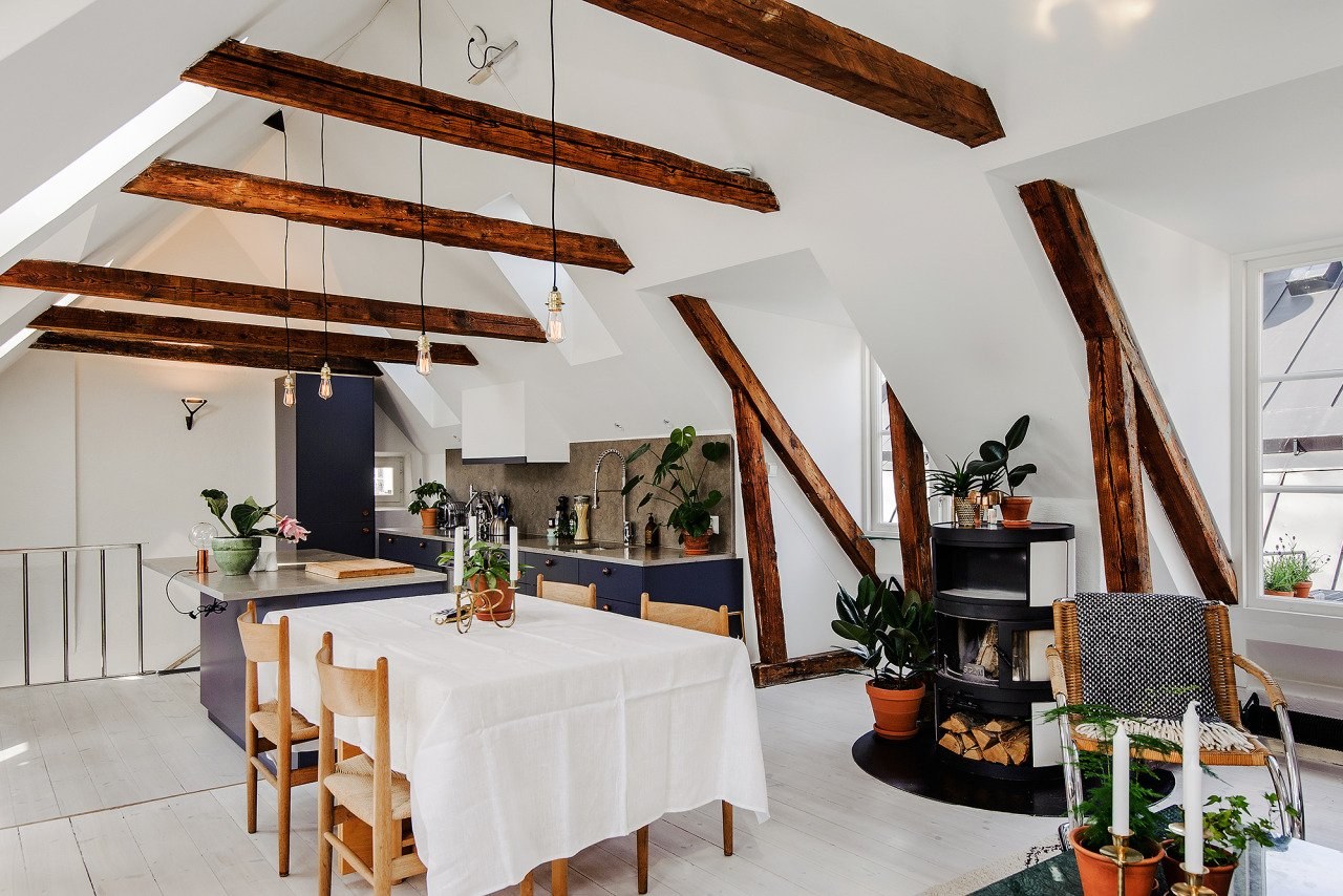 Фальшбалки в интерьере лофт кухня