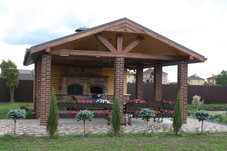Беседка с кирпичными столбами