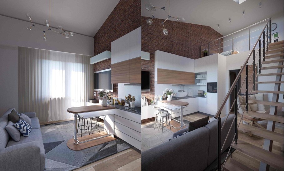 Двухуровневый пентхаус в стиле лофт Нью Йорк