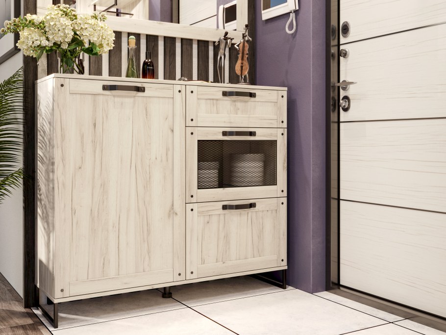 Прихожая лайн № 4 цвет дуб крафт серый/фасады МДФ белый глянец