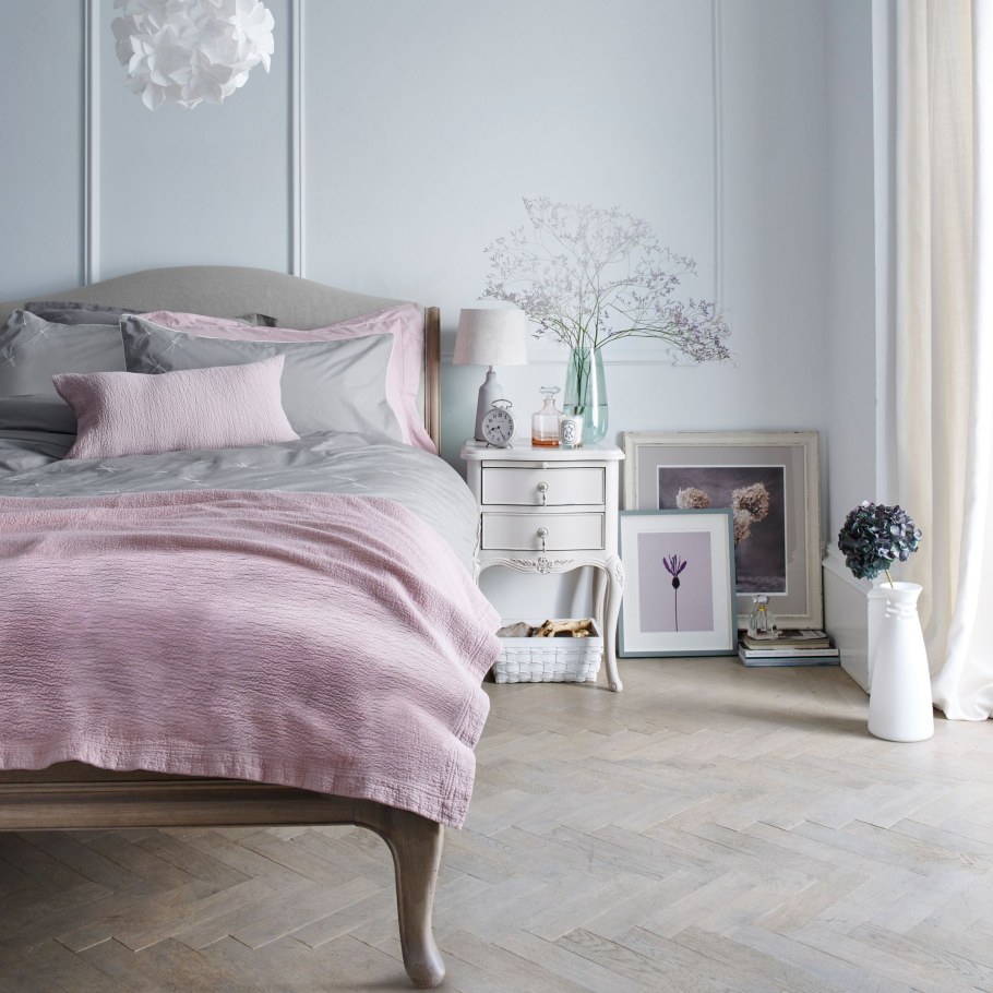Спальня в пудровых оттенках с белой мебелью (55 фото)