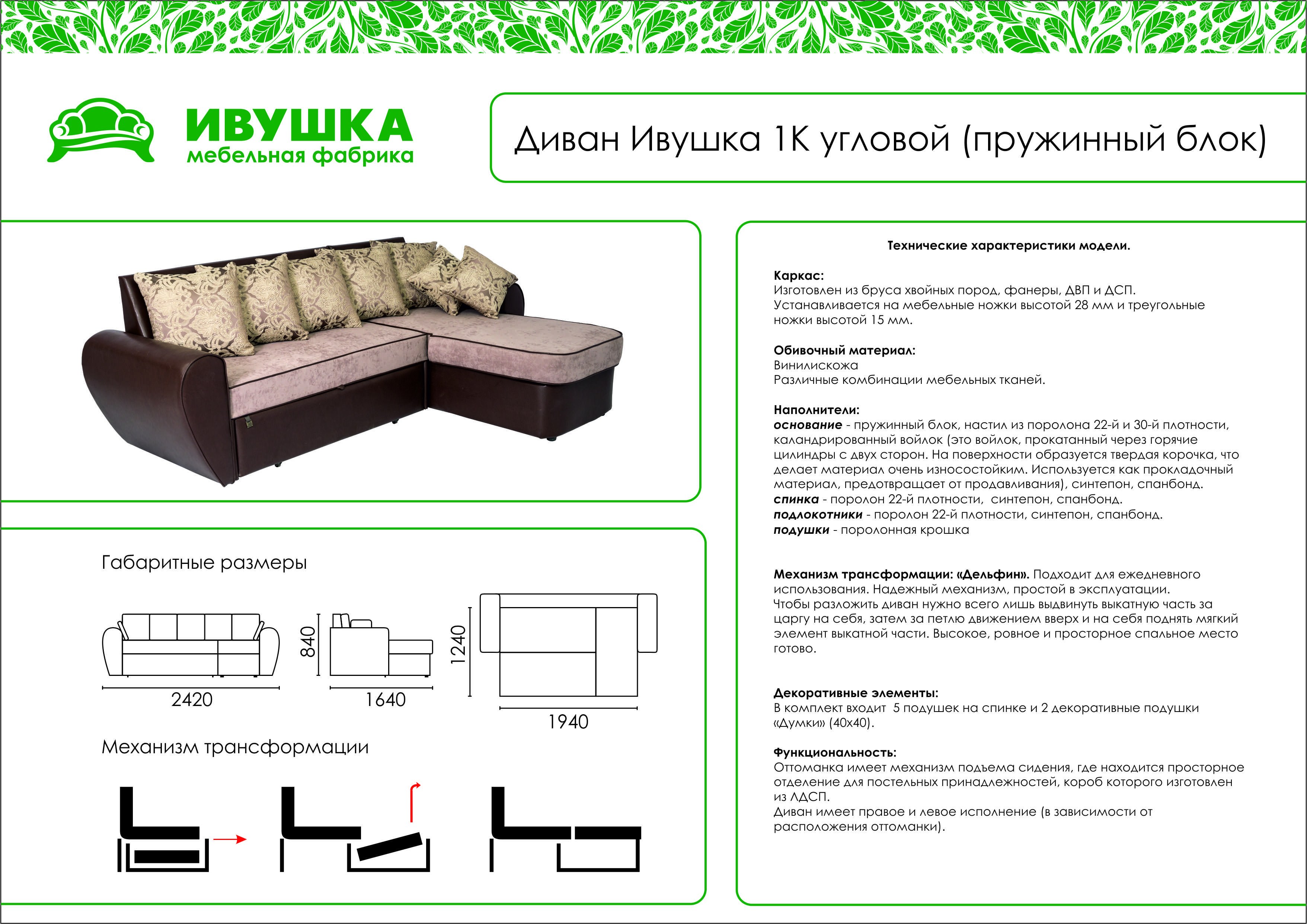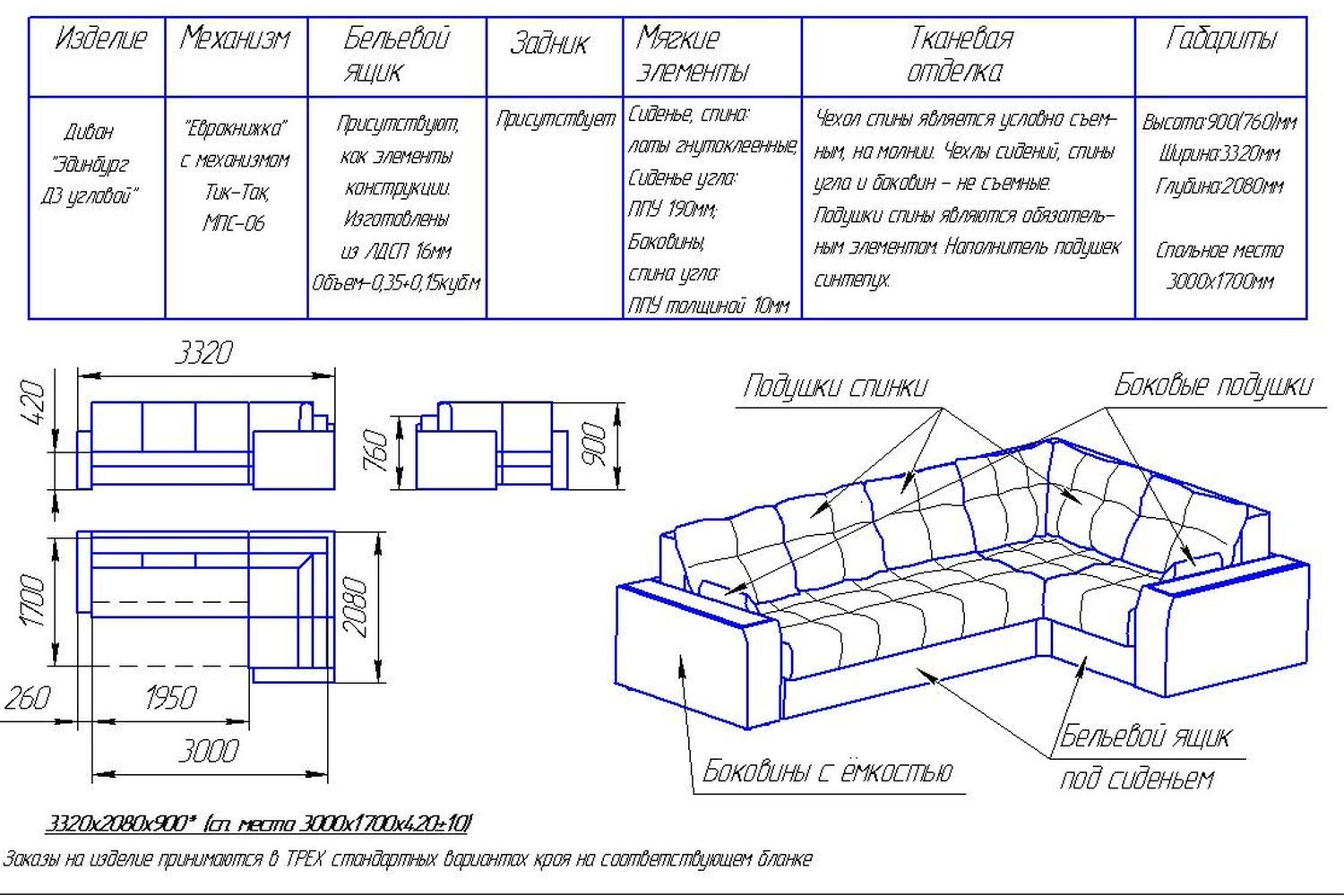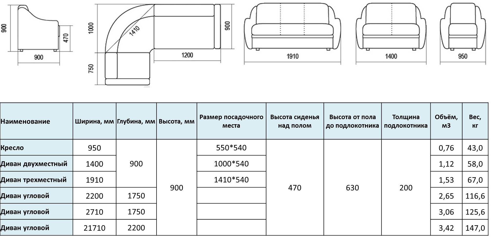 Диван технические характеристики