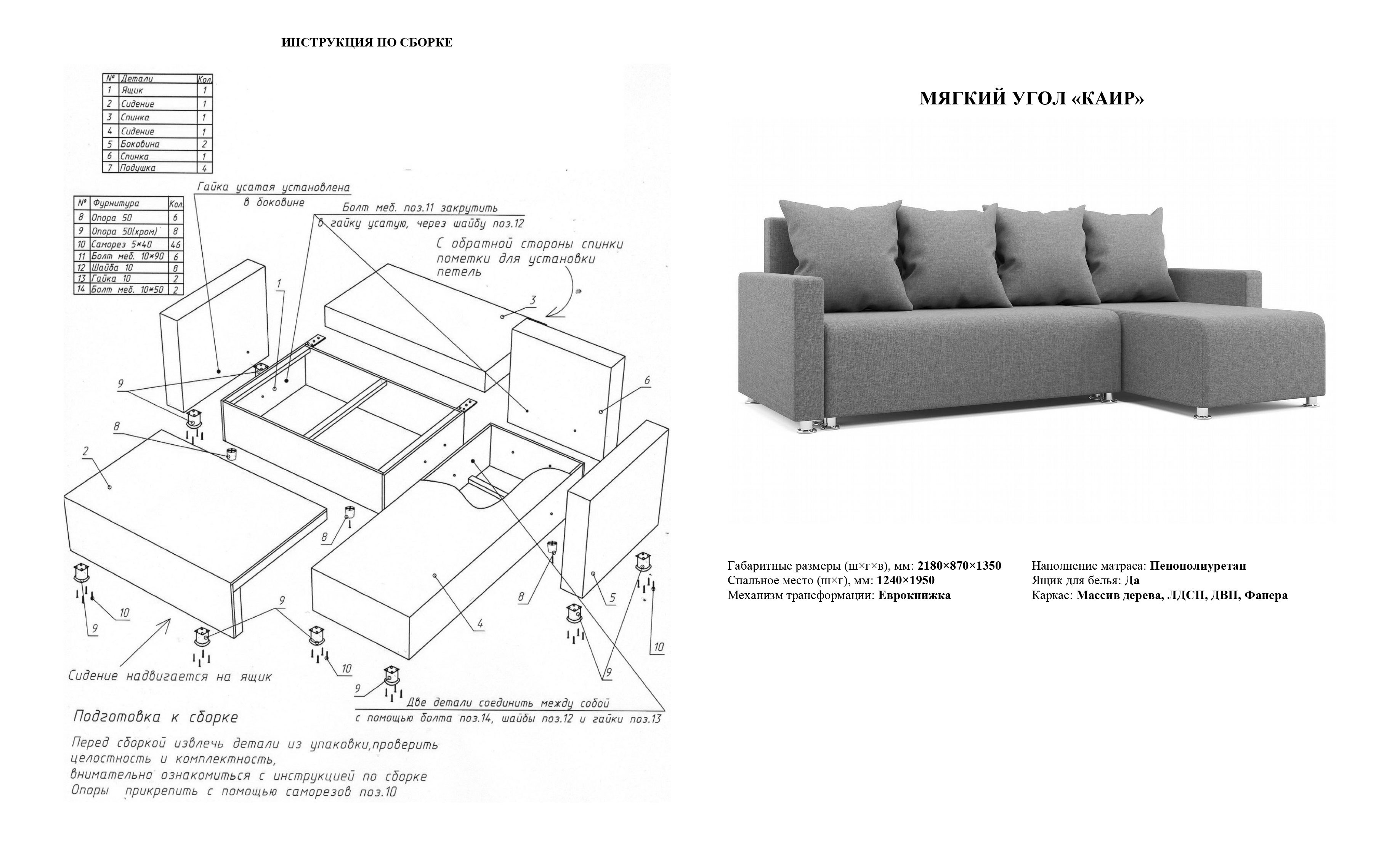 Диван кровать дуэт 2 выкатная книжка схема сборки
