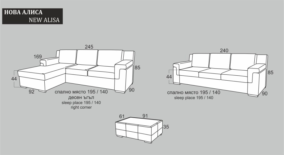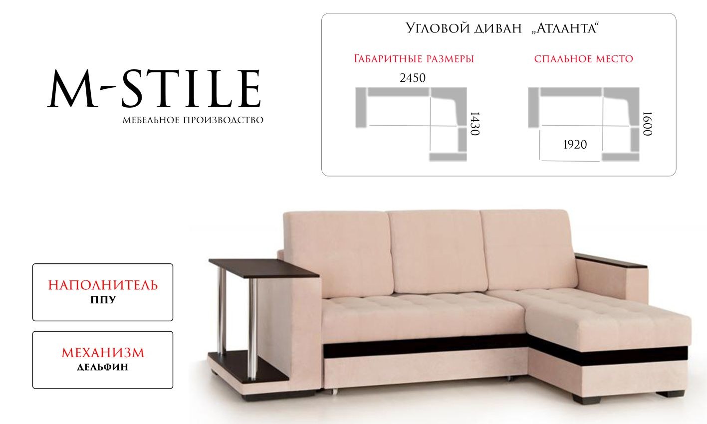 Диван Атланта угловой габариты