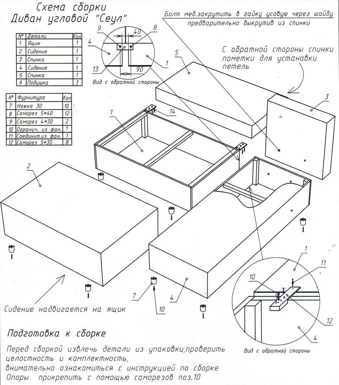 Схема сборки углового дивана Атланта