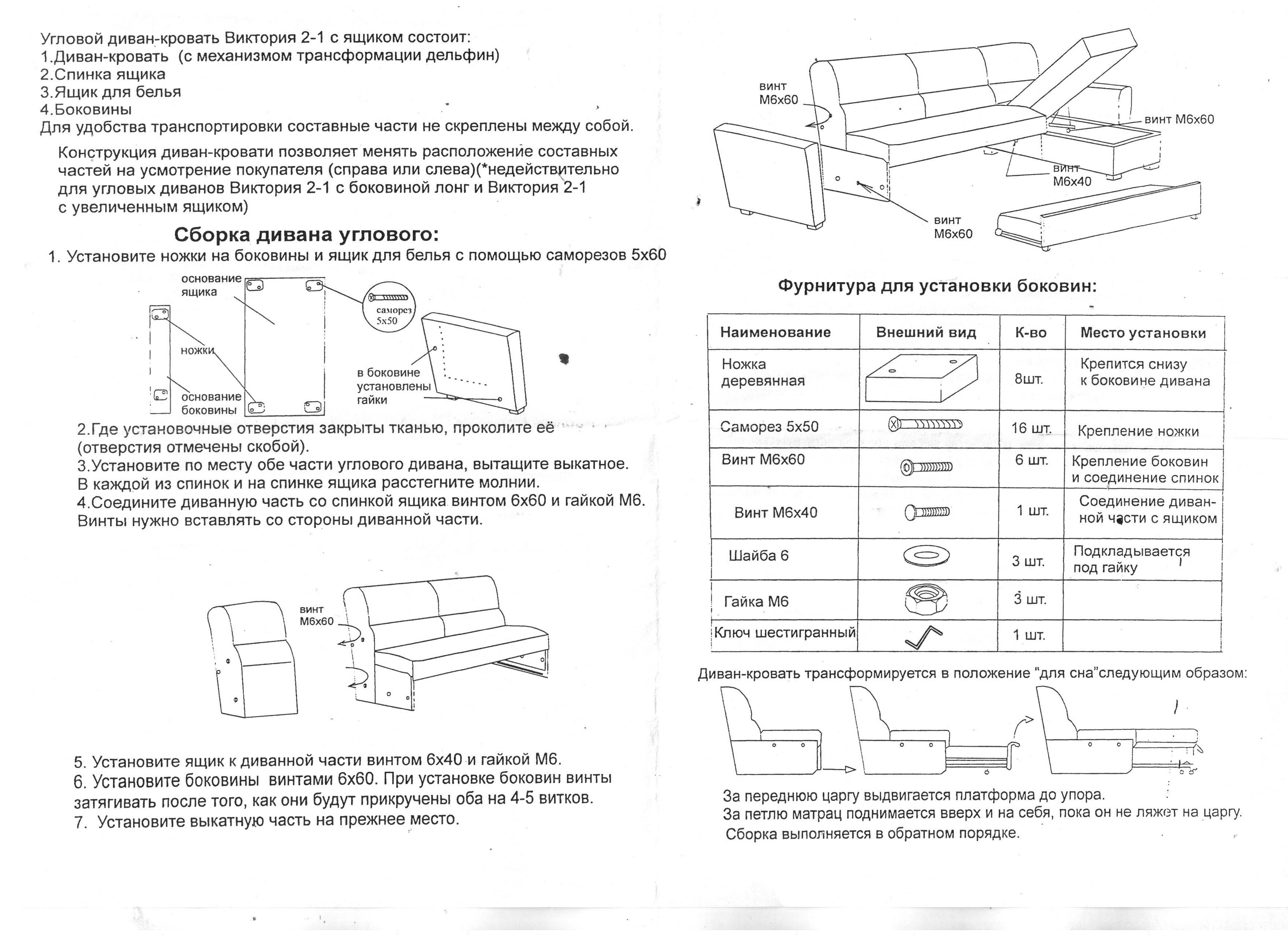 Диван Виктория угол 2 схема сборки