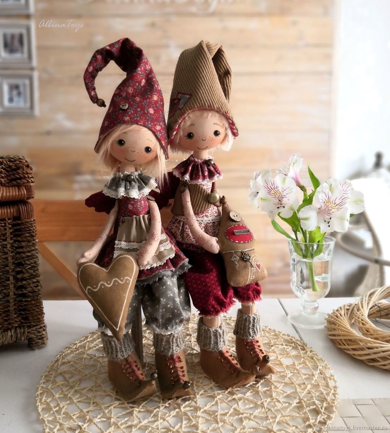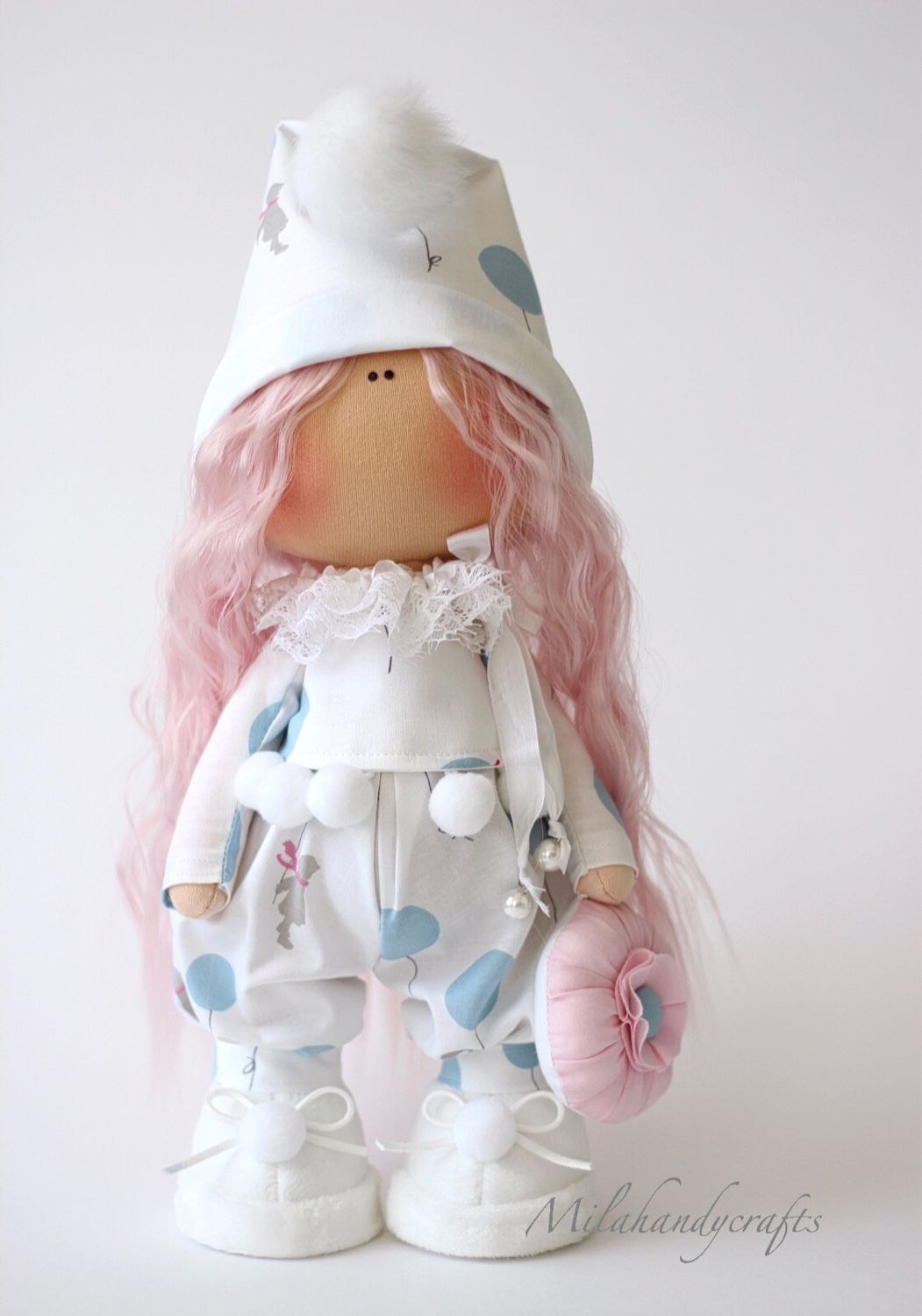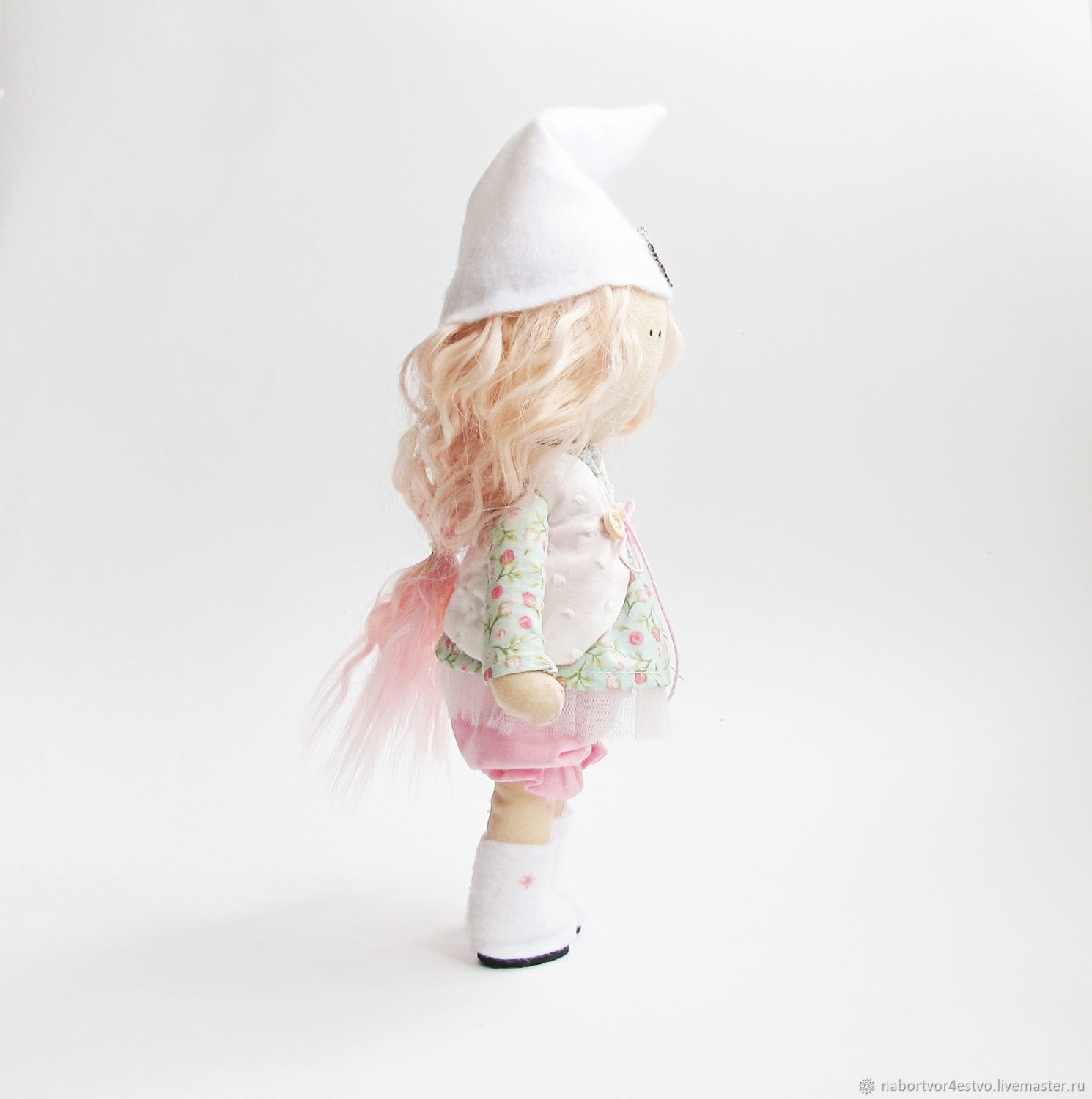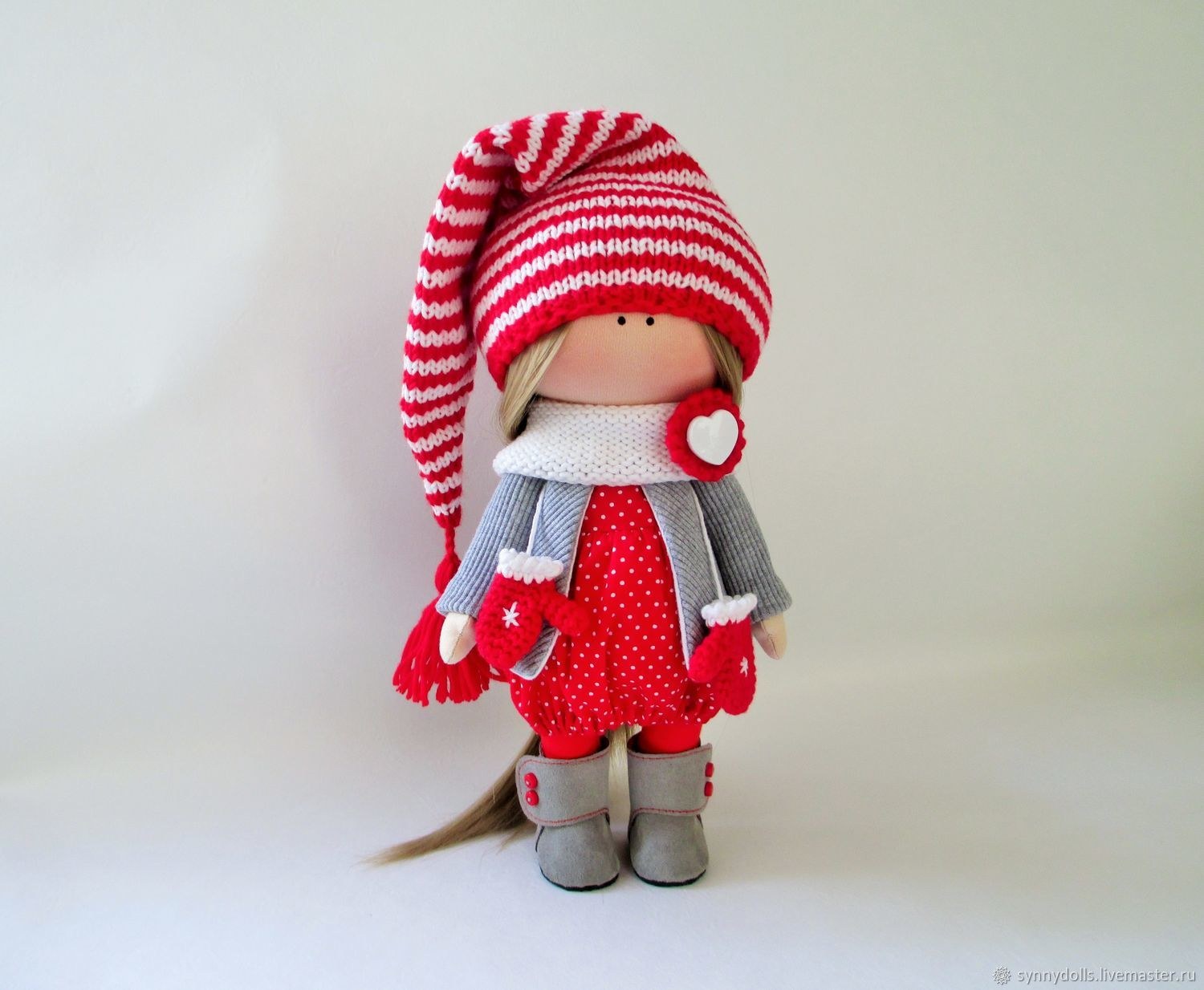 Интерьерная кукла "девочка в белом платье и полосатом шарфике", 41 см