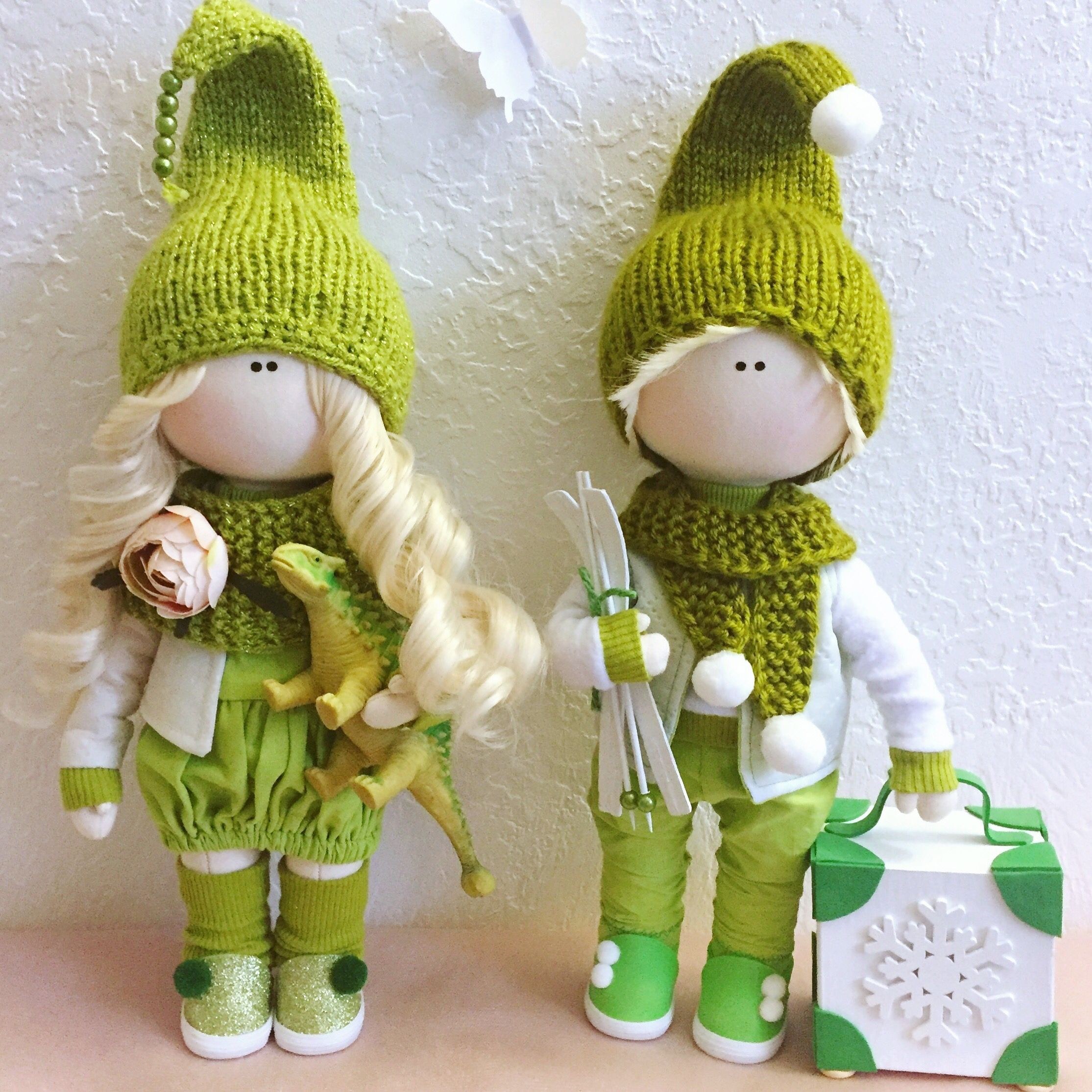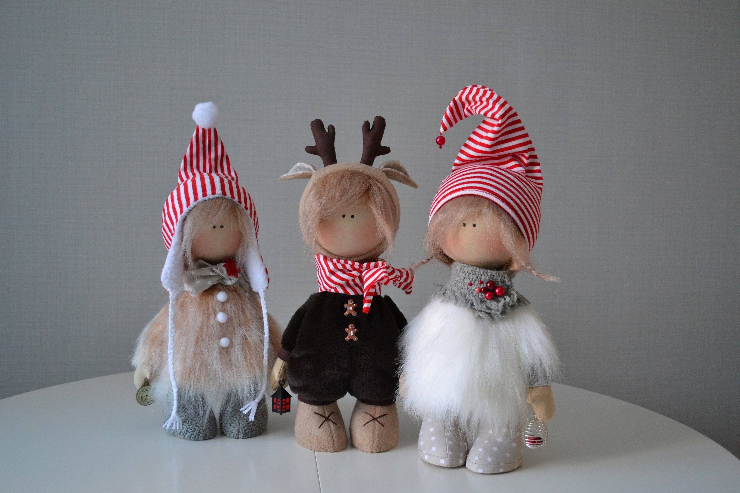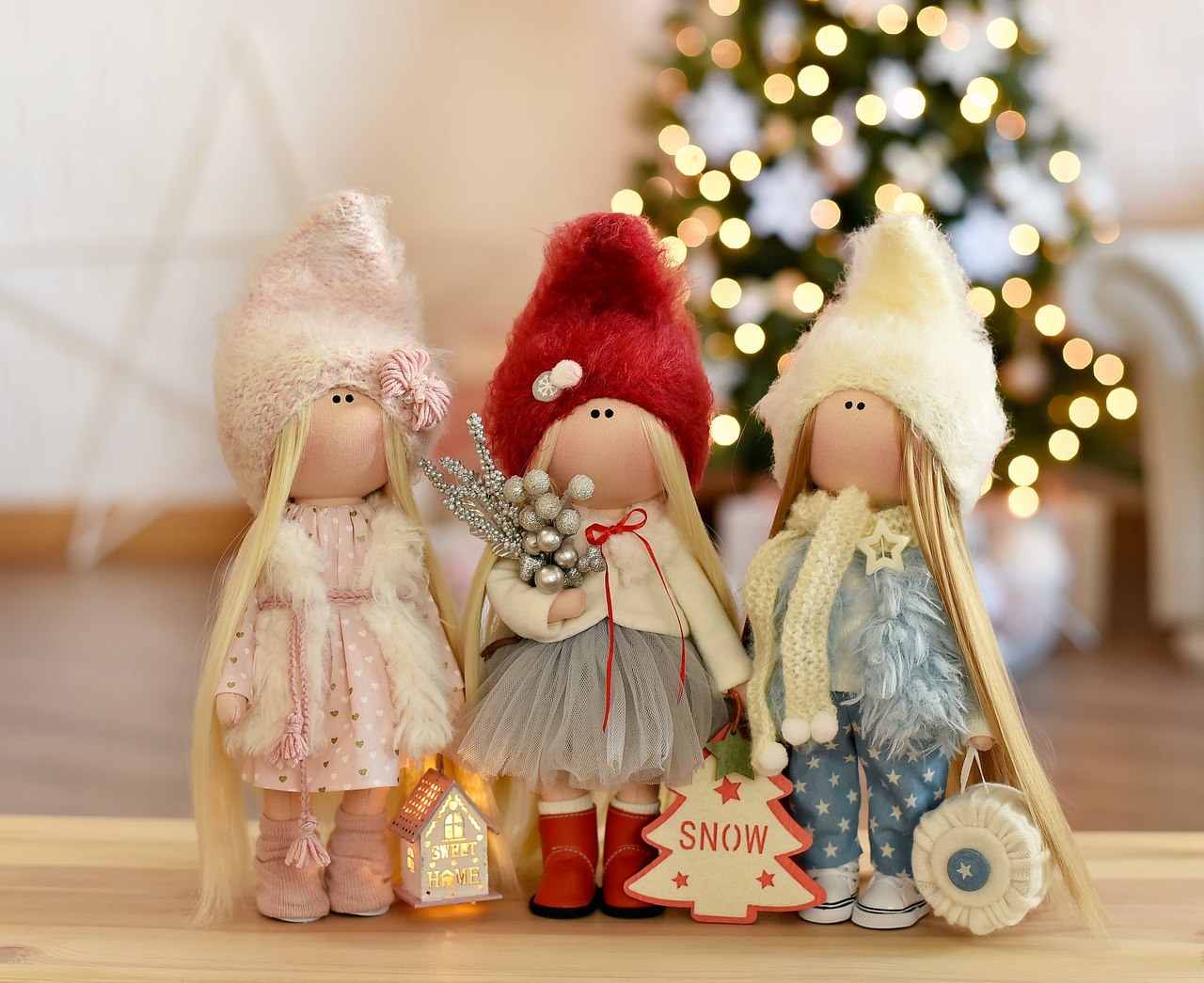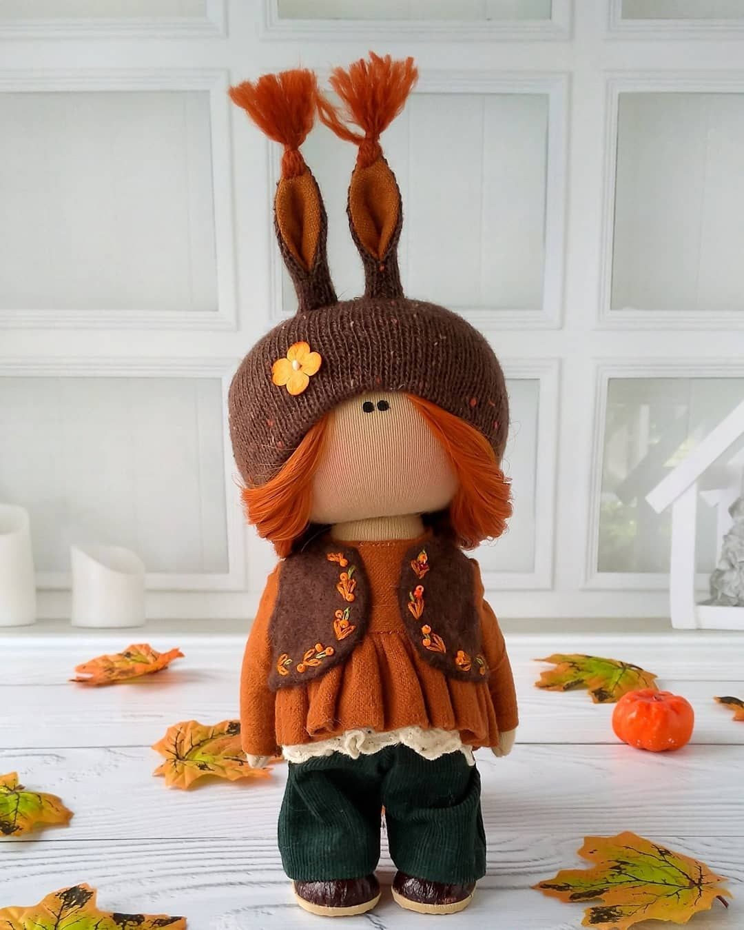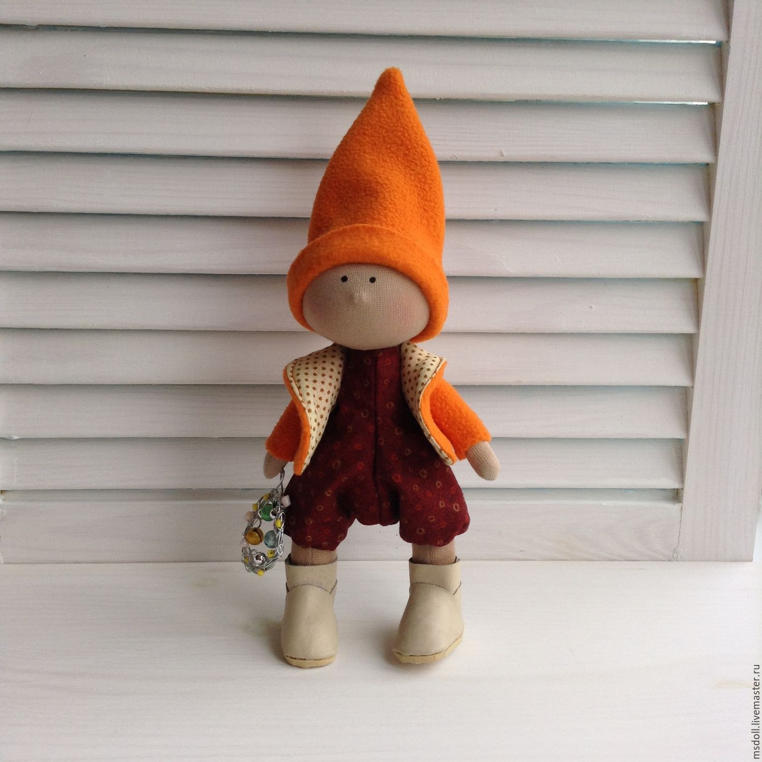 Интерьерная кукла "девочка в белом платье и полосатом шарфике", 41 см