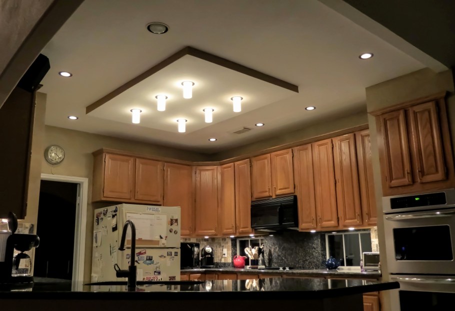 Современное освещение на кухне с натяжным потолком в хрущевке