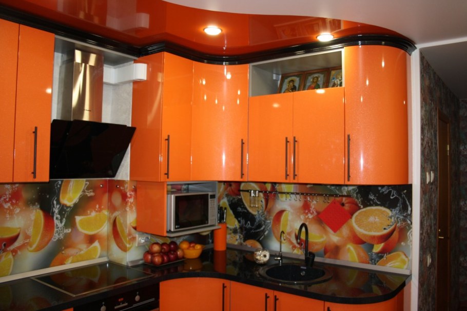 Черно оранжевая кухня угловая маленькая